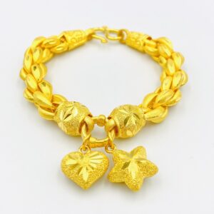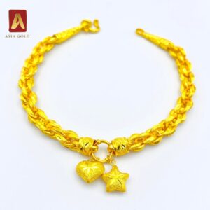 Asiagold สร้อยข้อมือทองคำแท้ 96.5 % หนัก 3 บาท ลายเกลียวโอริโอ้ตุ้งติ้งหัวใจดาว