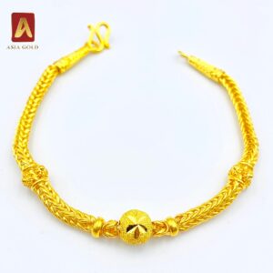 Asiagold สร้อยข้อมือทองคำแท้ 96.5 % หนัก 2 สลึง ลายกระดูกมังกรคั่นตุ้ม