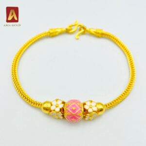 Asiagold สร้อยข้อมือทองคำแท้ 96.5 % หนัก 2 สลึง ลายเบนซ์ลงยาดอกไม้(ชมพู ขาว)